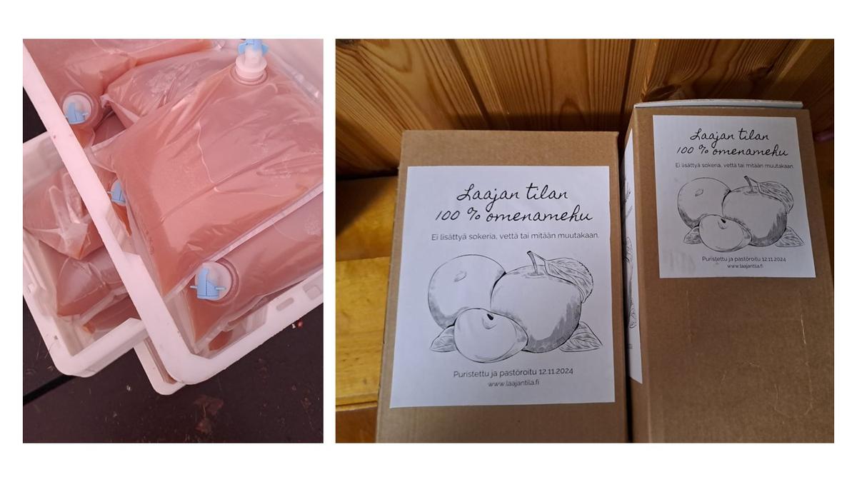 Hinta 1,70€/omenakilo sisältää pastöroinnin ja pakkauksen hanapakkauksiin.