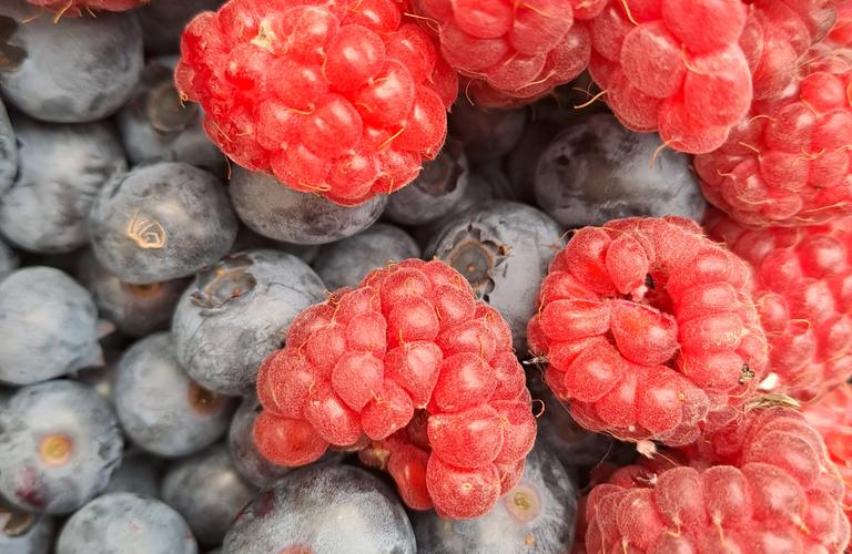 Mustikoita, vadelmia ja herukoita elokuussa
